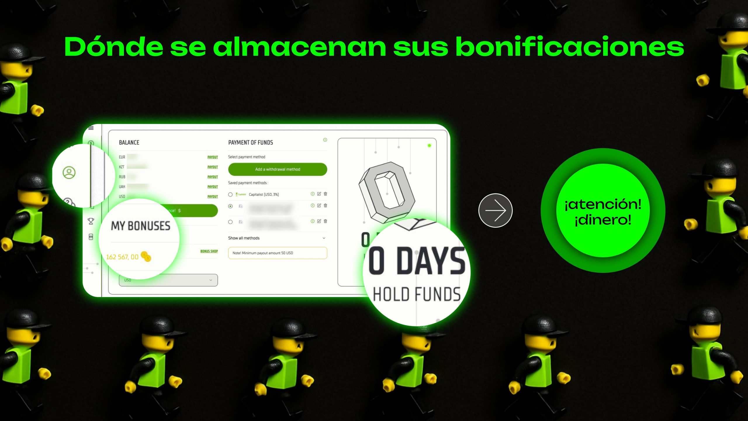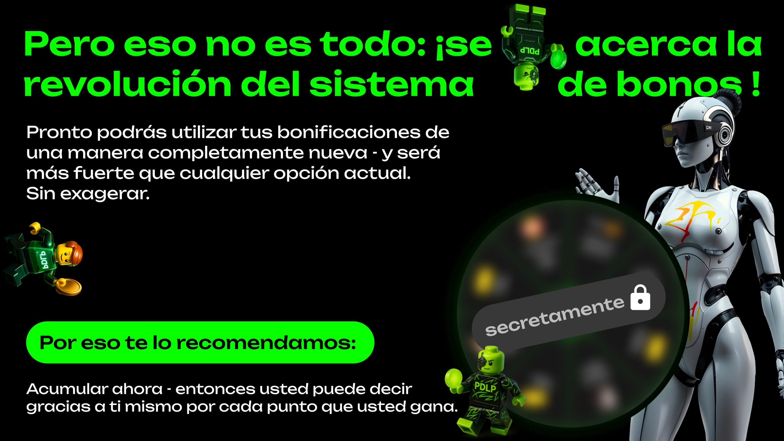 Por eso, lo más importante ahora es acumular la máxima cantidad de bonificaciones posible. Cuanto mayor sea tu saldo de bonificaciones antes del lanzamiento del nuevo sistema, más beneficios obtendrás del revolucionario mecanismo que estamos preparando. ¡Así que empieza a ganar ahora mismo!